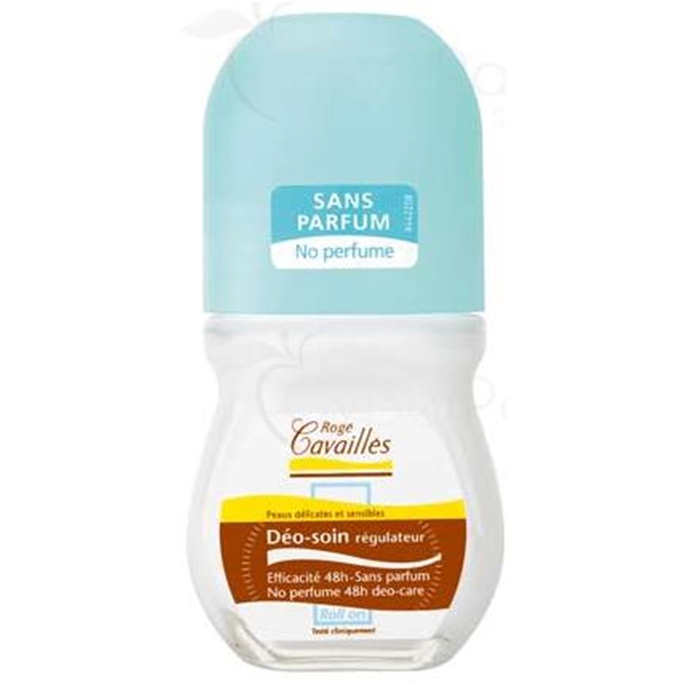 Roll'on déodorant, soin régulateur efficacité 48 heures. Sans parfum, sans alcool, sans paraben. Hypoallergénique. Conditionnement : flacon bille.